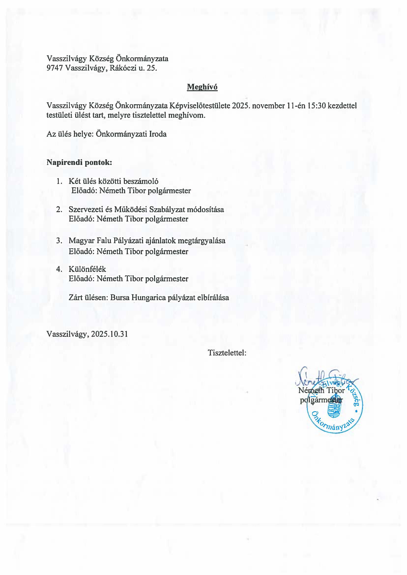 Vasszilvágy Község Önkormányzata